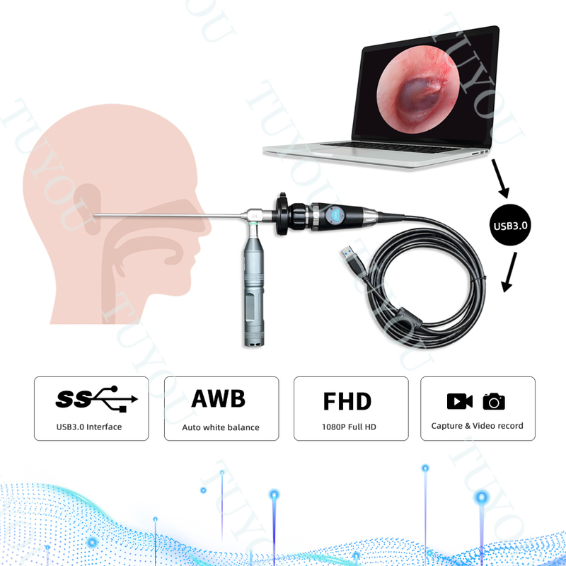 Cámara de endoscopio médico portátil USB Full HD TUYOU TU-1080PHDMI para revisión de mascotasUso otoscópico, nasal y urológicoCámara de endoscopio FHD USB3.0 del fabricante chino para revisión de otorrinolaringología en portátil